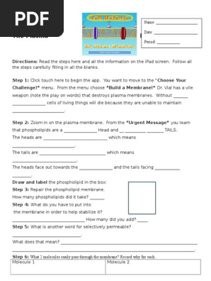 Cell defense the plasma membrane. Answer in red cell defense the plasma membrane directions. From the menu choose build a membrane dr. Read the steps here and all the information on the screen.