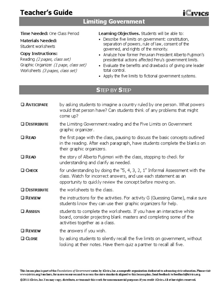 Limiting government icivics worksheet answers. Analyze how former peruvian president alberto fujimori s presidential actions affected peru s government limits. Displaying all worksheets related to limiting government. Limiting government learning objectives. Describe five limits on government.