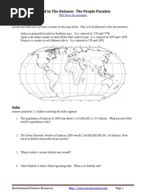 World in the balance the population paradox worksheet answers. Uttar pradesh with more people than all but four nations in the world. World in balance the people paradox. An outstanding episode of nova that explores the demographic differences between the countries of india japan the united states and the sub saharan region of africa. 4 how does the changing population affect the elderly.